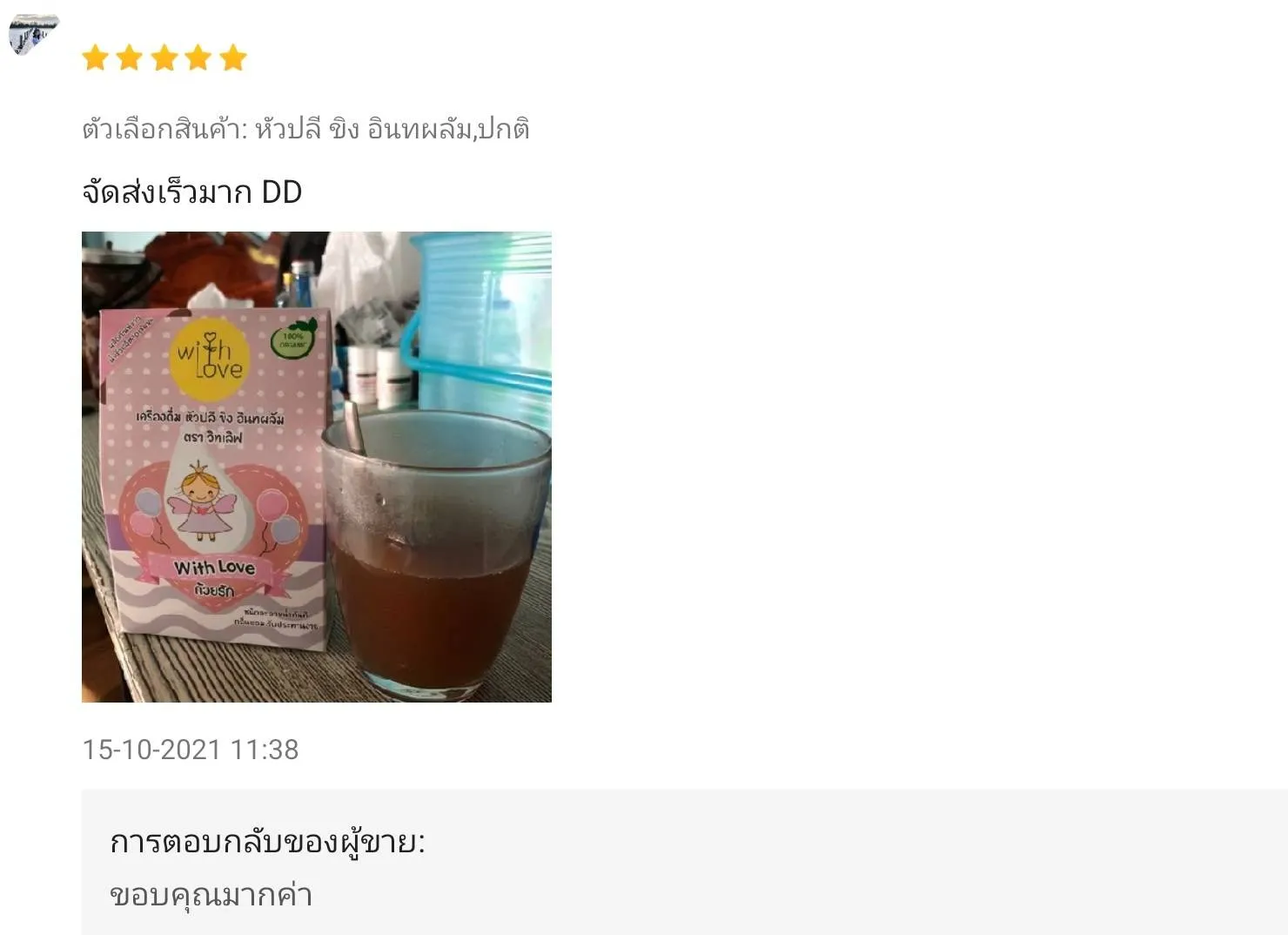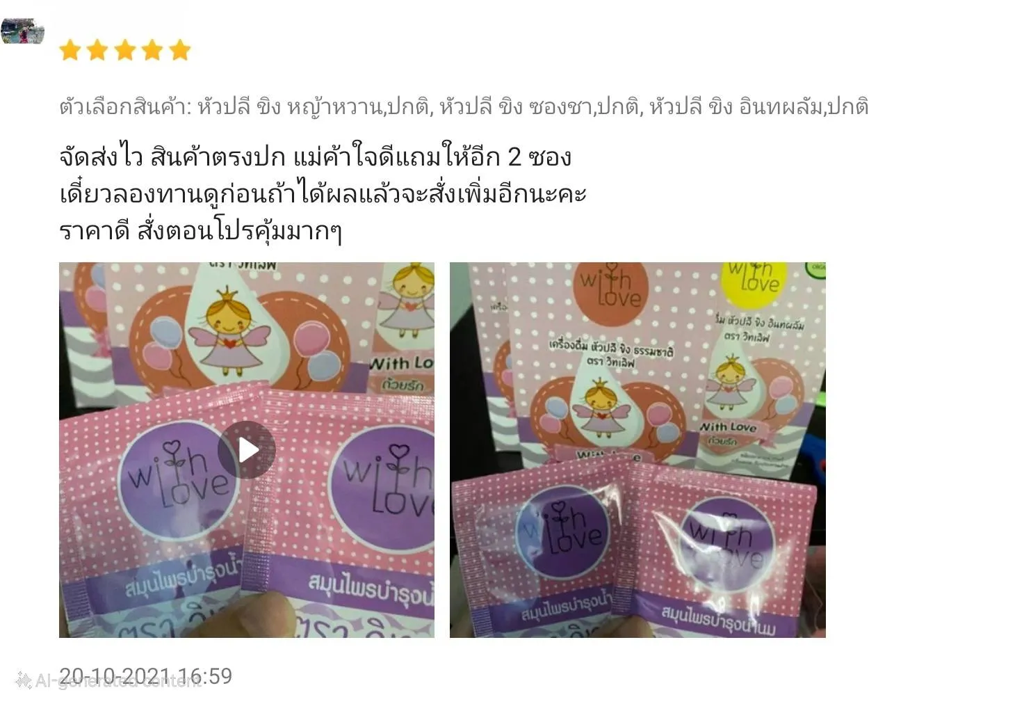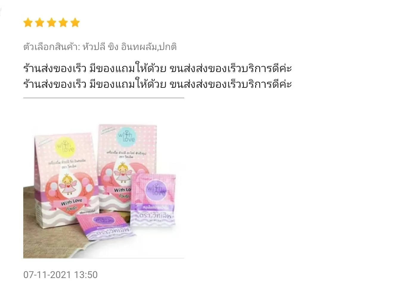“จัดส่งไว สินค้าตรงปก แม่ค้าใจดีแถมให้อีก 2 ซอง
