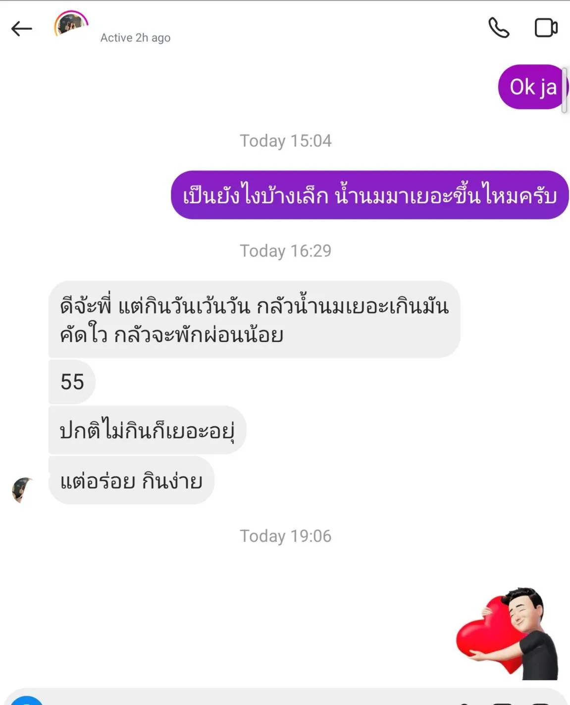 “กิน วัน เว้น วัน กลัว น้ำนม เยอะ เกิน มันคัดใว กลัวจะพักผ่อนน้อย อร่อย กินง่าย”